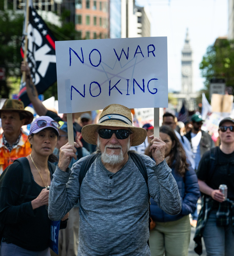 东说念主们在好意思国加利福尼亚州旧金山参加“不要国王”抗议四肢。新华社发(朱子于摄)
