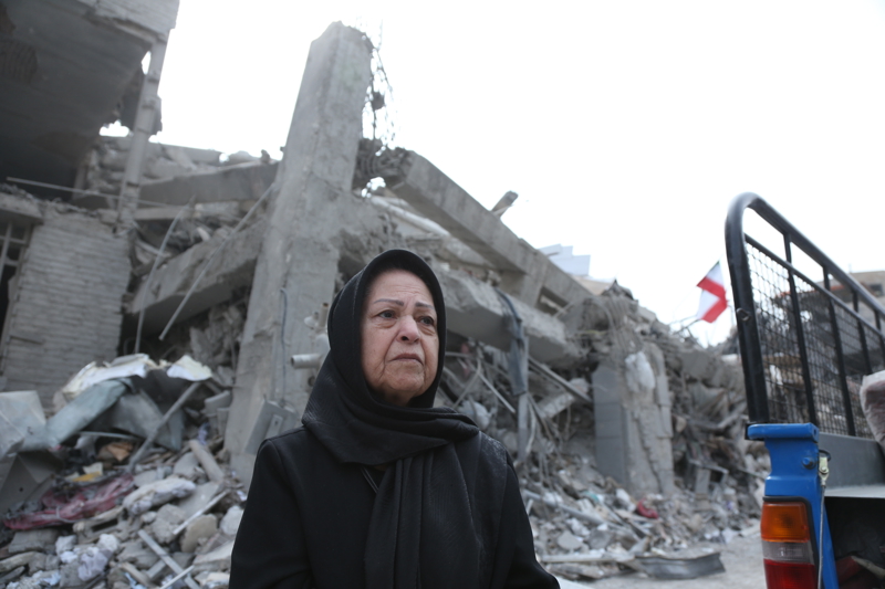 伊朗德黑兰,市民站在建树废地前。新华社记者 沙达提 摄