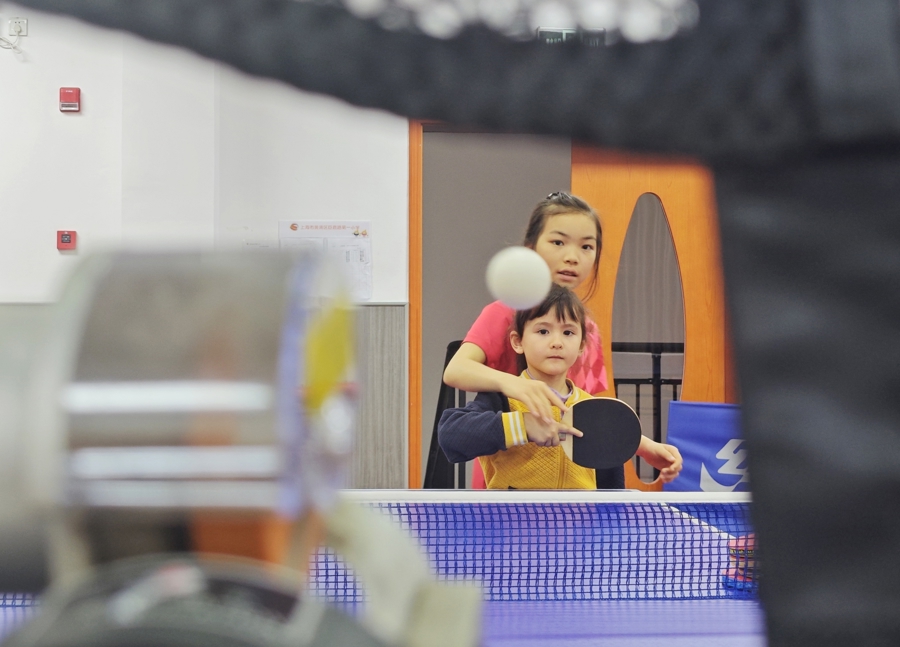 孩子们在巨鹿路一小进行乒乓体验 照相:陶磊