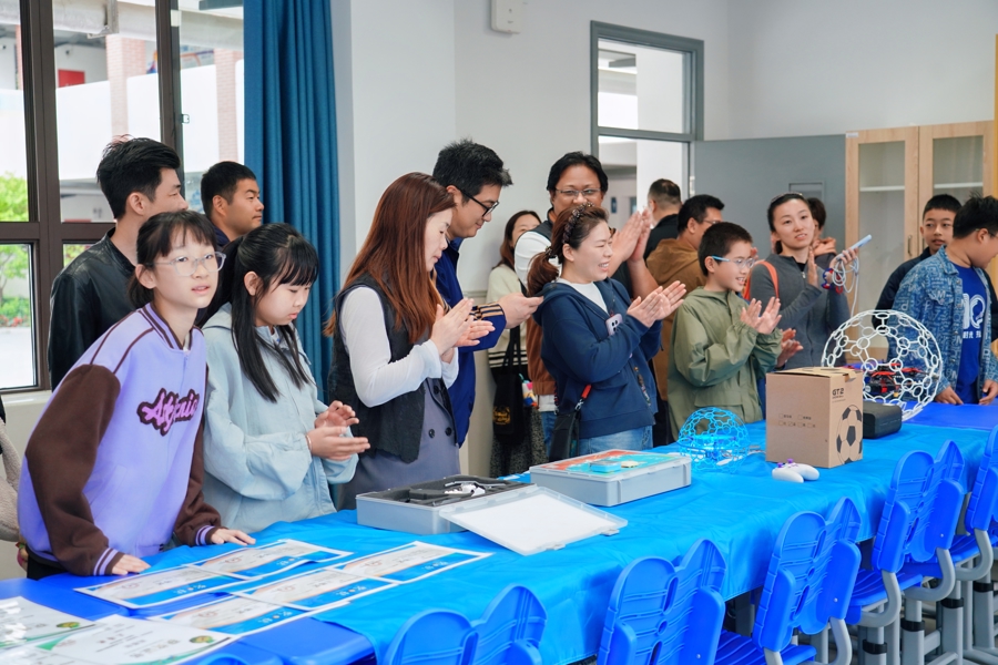 本年,梅陇实验灵通日的最特别“主角”不再是校长和竭诚,而是学生。学生志愿者成为了场馆处分员、行径步骤率领员。“这是咱们的无东说念主机社团,经过一年的零基础学习,咱们不仅能送无东说念主机飞上天,还能操控它作念许多事。”“这是咱们创新实验室的3D打印机,通过电脑建模,再将作品打印出来。”六(2)班的杜佳静和六(1)班的沈宸面临家长们对拓展课程的意思意思极少不怯场,聊起我方的社团头头是说念。