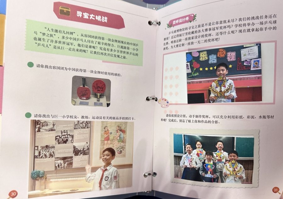 大开手中厚厚一册《作念乓乓响的中国东说念主》读本,四年级男孩王哲琨和方嘉玮高慢地展示我方的成绩。从了解乒乓比赛限定,到清爽不雅赛礼节、感受历代乒乓东说念主风范、想象乒乓板和冠军奖杯、写乒乓小诗、当“巨能小记者”,以致在数学课上亦然通过一块乒乓球板,了解科学测量……邻接举办18年的乒乓文化月通过各年级特质的跨学科学习,助力孩子们成长。比及小学毕业,这本读本就成了每个东说念主的专属“工夫胶囊”。