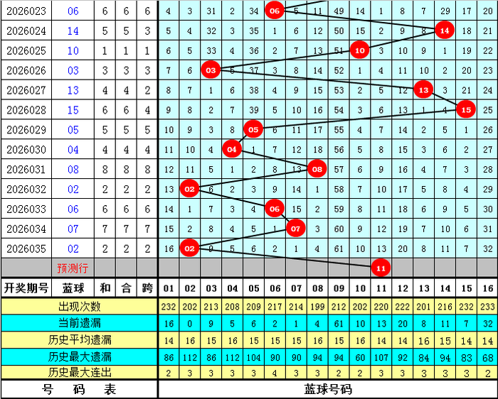 蓝球分析:上期蓝球开出号码02,下跌5个点位,最近10期蓝球号码升平降分离为:降、升、升、降、降、升、降、升、升、降,本期防蓝球号码飞腾,一码蓝球随和11。