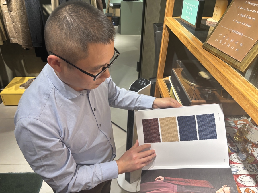 Callisto门店内,有着二十余年西宾的定制师于建军正在为顾主量体。“我的微信通信录里有几百位老客户。”他告诉记者,品牌与意大利、英国顶级面料供应商调和,还引入杰尼亚原打版师,品性并排奢牌,价钱却更具上风。“通常的进口面料,一线品牌定制要四万多元,咱们不错低廉三四成。”