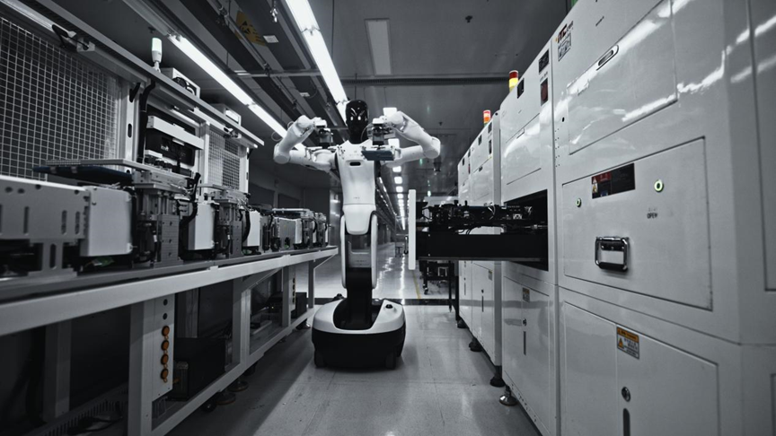 在江西南昌龙旗科技园的活水线上,几名以产线“认真职工”身份亮相的机器东说念主,正引起全球具身机器东说念主产业的眷注。只见它们作为游刃过剩:精确捏取运行中的平板电脑,稳稳放入测试治具,完成交互后再左证检测驱逐分类放回活水线。