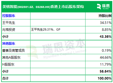 证实招股书清楚,好意思格智能在香港上市后的股权架构中,王平先生径直握股39.13%,通过适度兆格投资握股10.03%,所有握股约49.16%。